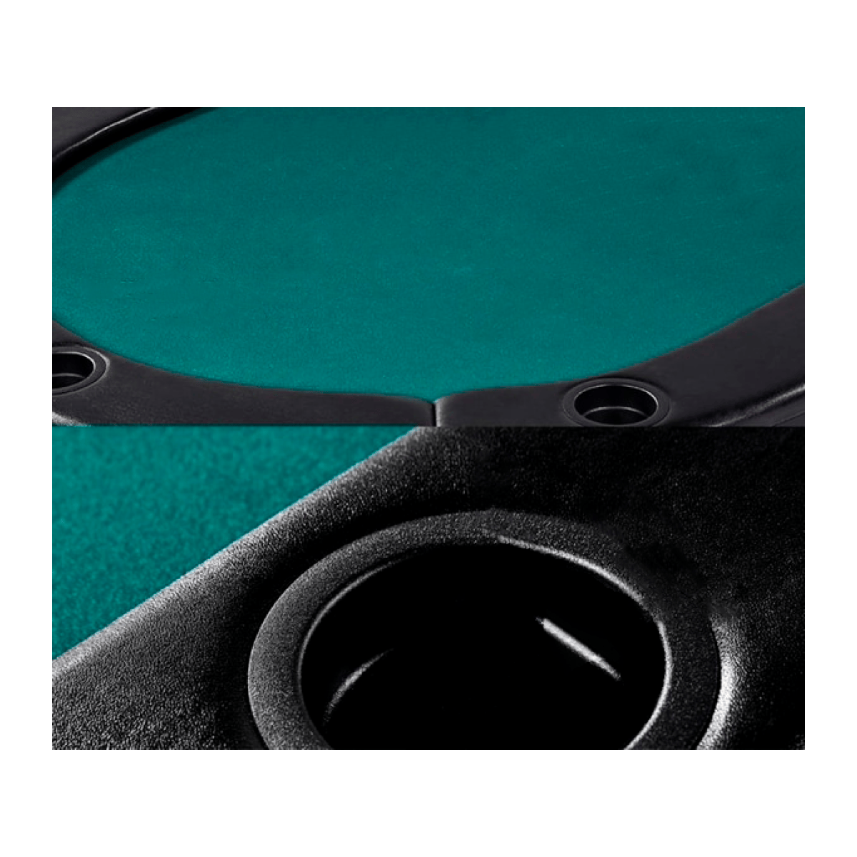Основание стола изготовлено из MDF и покрыто синтетическим зеленым сукном. Края стола имеют мягкую окантовку из кожзаменителя и оснащены пластиковыми подстаканниками.