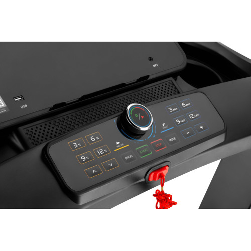 Беговая дорожка XT800 позволяет регулировать угол наклона от 0 до 15% с шагом в 1%. Это помогает разнообразить нагрузку и активизировать новые группы мышц. Быстрые кнопки на 3%, 6%, 9% и 12% – для мгновенного переключения без остановки тренировки.