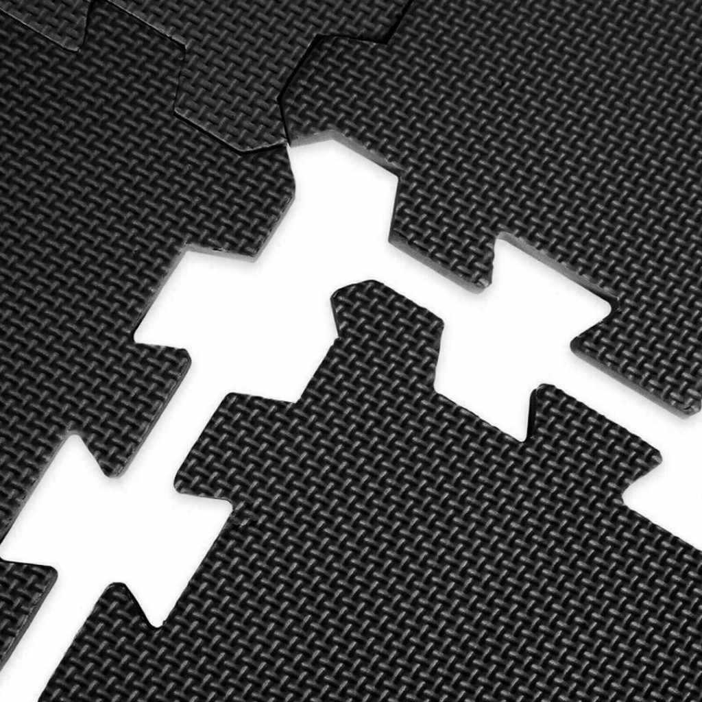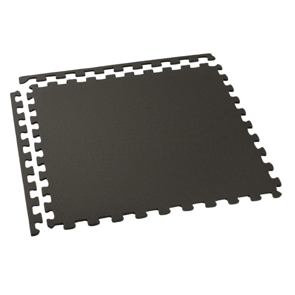 В комплект входят четыре части размером 61×61см каждая и 8 элементов, составляющих рамку коврика. Соединять все части просто и интуитивно понятно, можно быстро менять конфигурацию мата. Края элементов плотно прилегают друг к другу, создавая ровную поверхность.