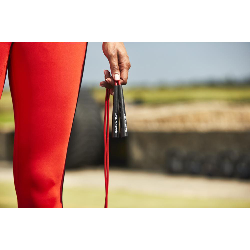 Скакалка Reebok RARP-12011 позволит вам развивать выносливость на ходу, требует минимум места и времени для создания эффективной кардиотренировки. Скакалка длиной 280 см, легко отрегулированная и обрезаемая по размеру, обеспечивает постоянную скорость и точность, позволяя вам войти в ритм тренировки.