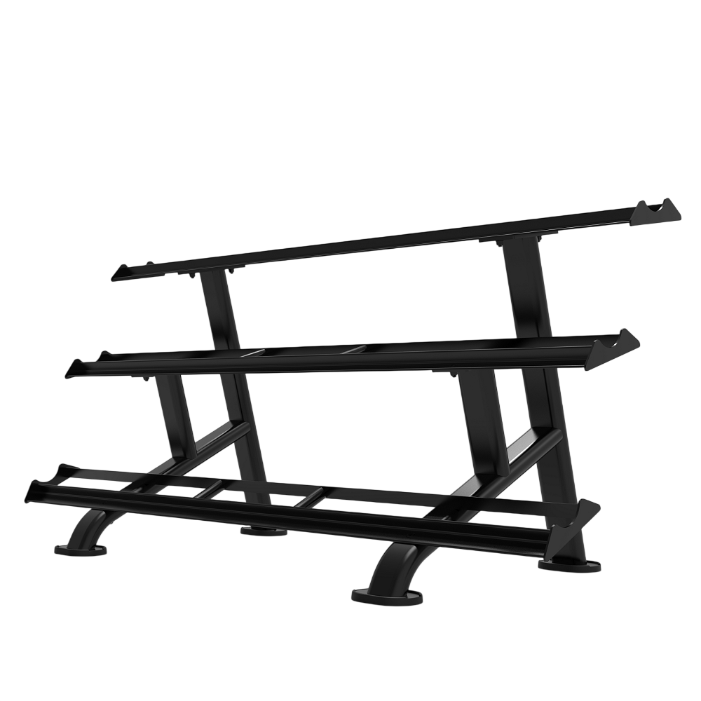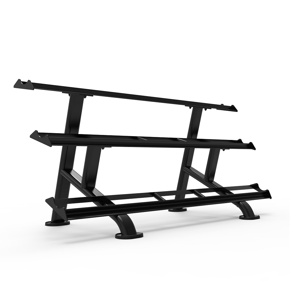 - Трёхъярусная конструкция позволяет разместить до 15 пар гантелей (по 5 пар на каждом ярусе).