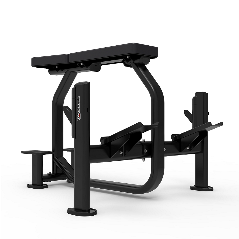 - Профессиональная скамья со страховочными платформами и с упорами для ног пользователя.