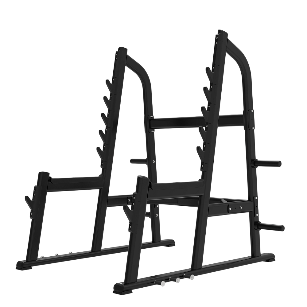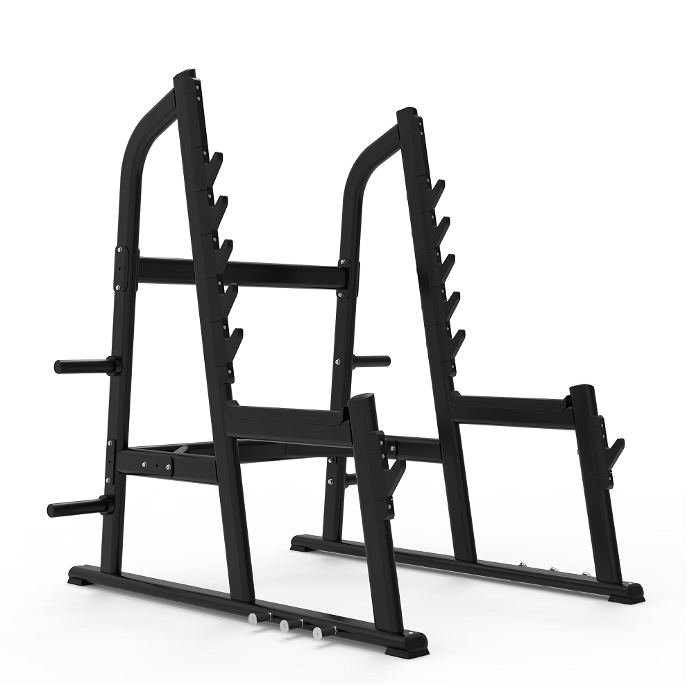 - Вертикальные стойки с шестью фиксаторами штанги. Стильные закругленные молдинги надёжно оберегают поверхность стойки и грифов от сколов и царапин