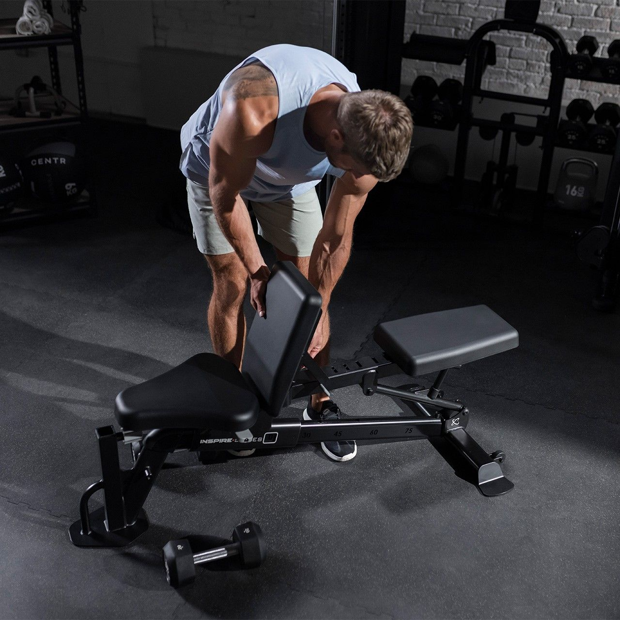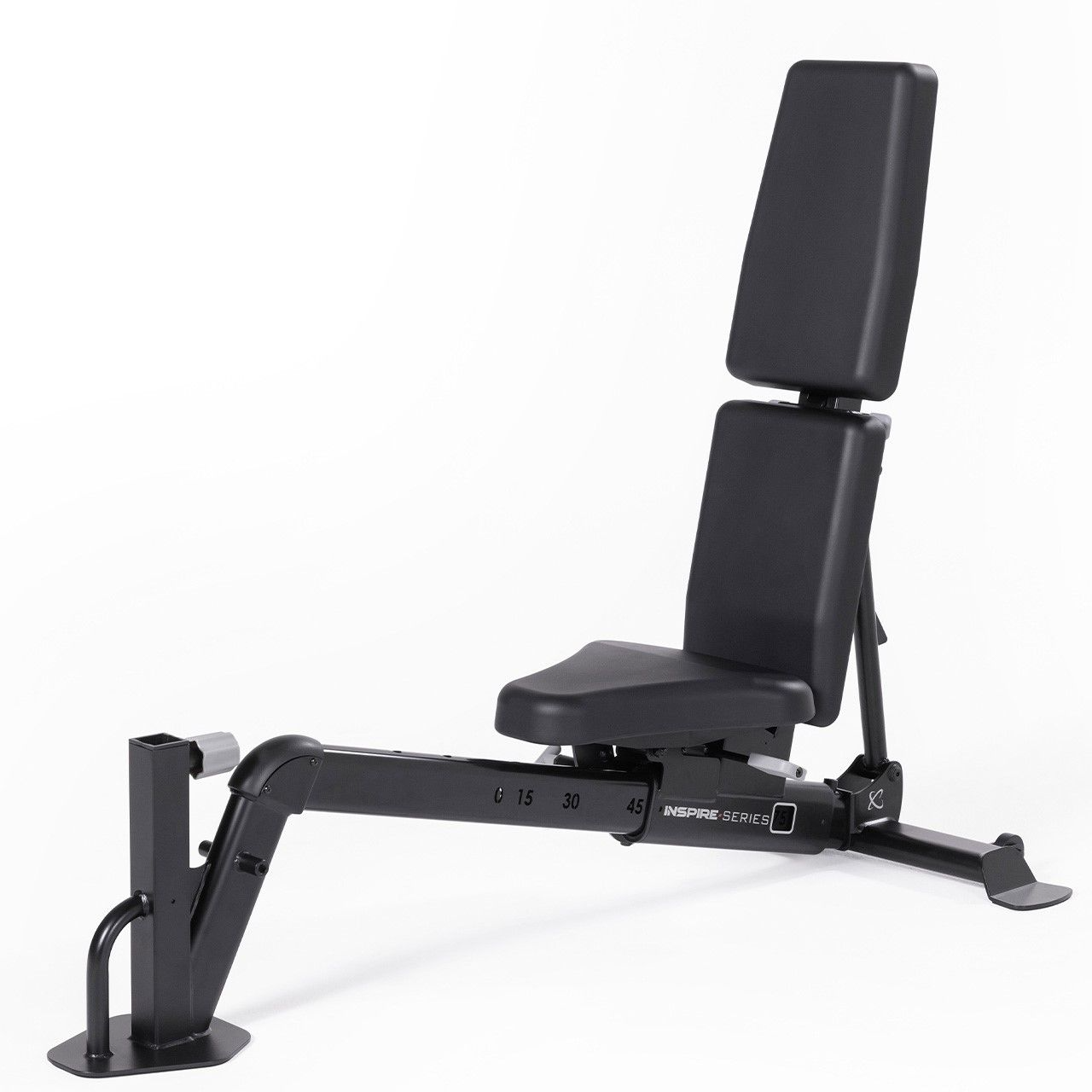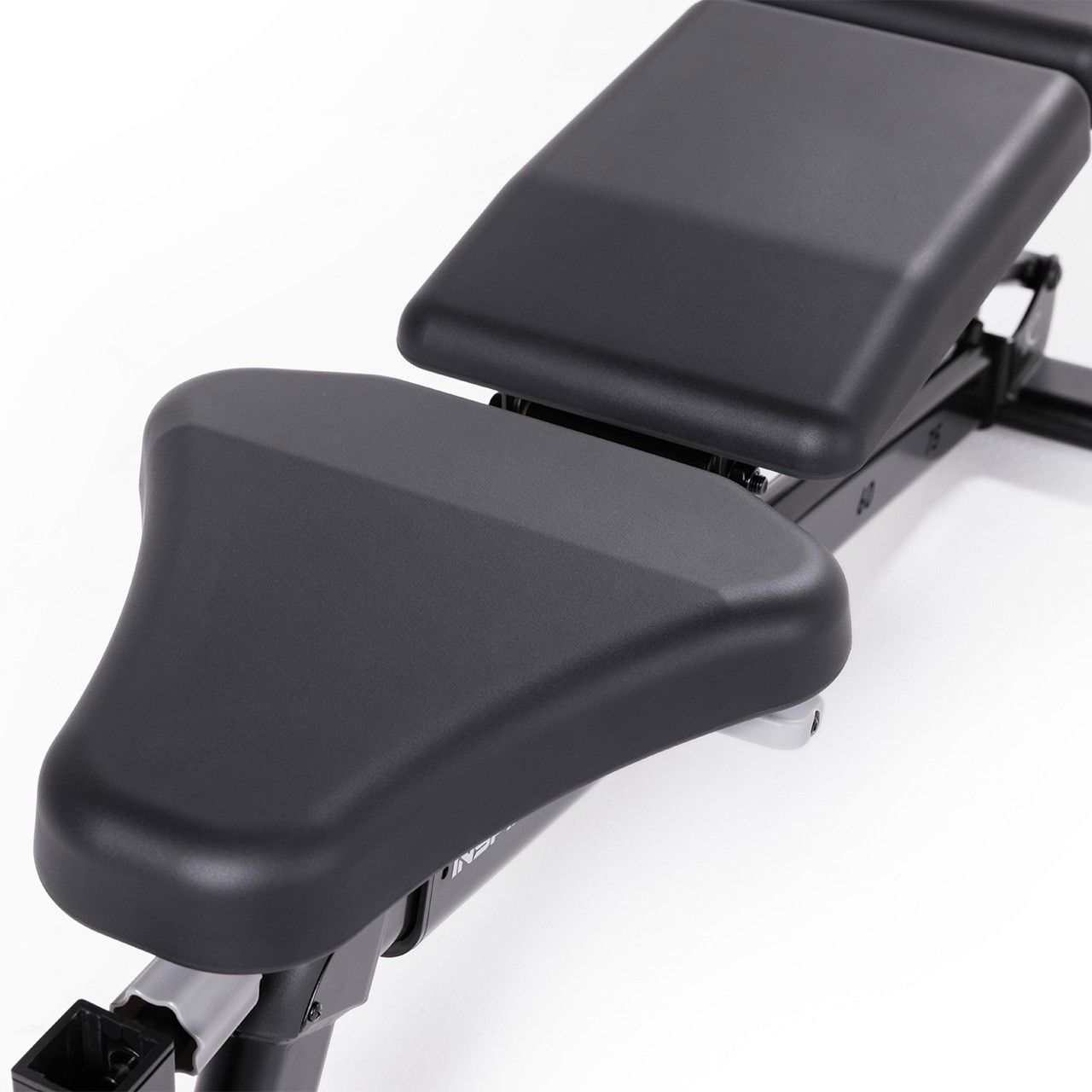- Угол наклона регулируется от горизонтального к прямому, что позволяет по-разному нагружать мышцы и выполнять широкий спектр упражнений – от классического жима до упражнений для развития брюшных мышц.