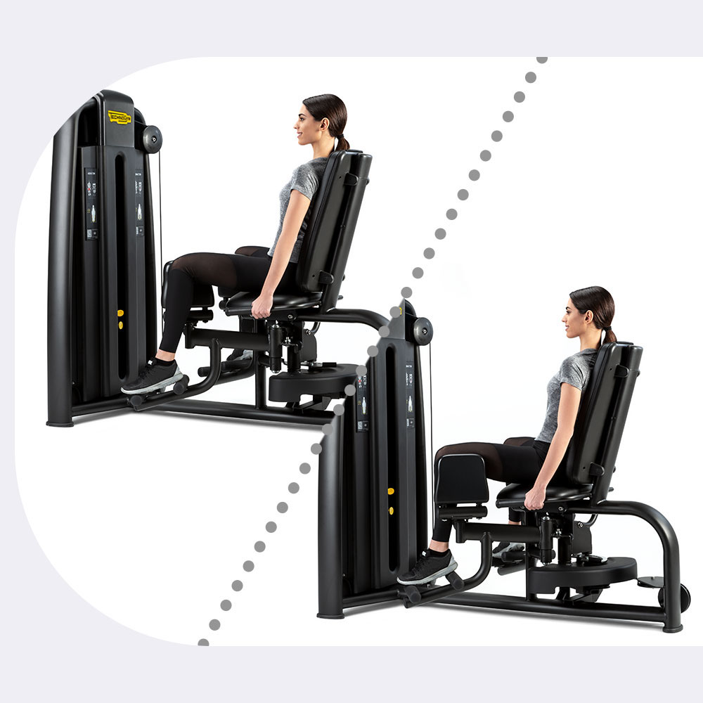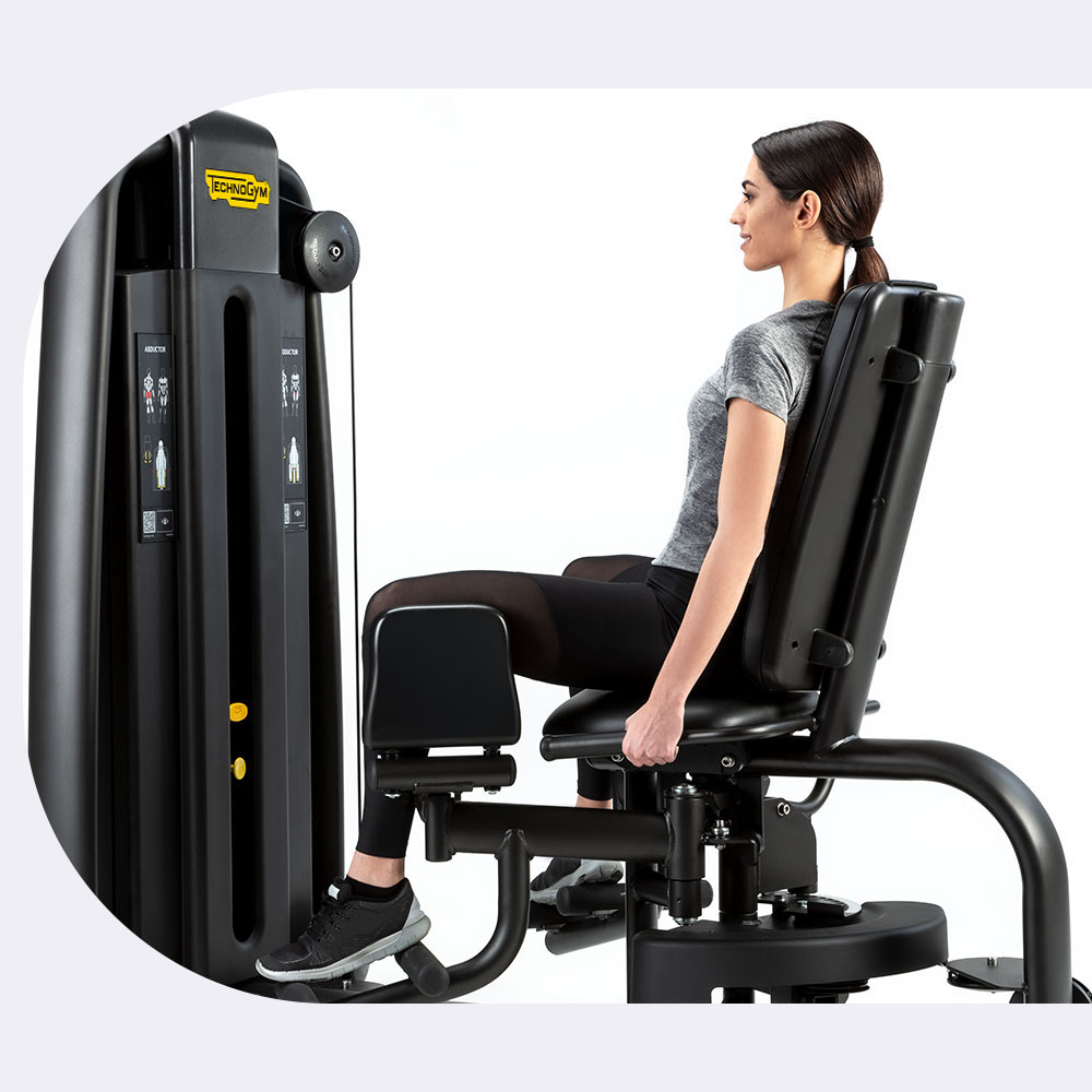 Легкое переключение между дополняющими упражнениями для занятия соответствующей стартовой позиции может быть осуществлено сидя на тренажере. Рукоятка с функцией ROM (диапазон движения) настраивает исходное положение и выбор упражнения.