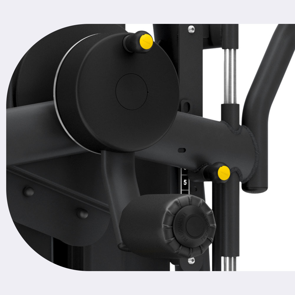 Благодаря тому, что регулирующие устройства окрашены в ярко-желтый цвет, даже неопытные пользователи легко найдут их и смогут самостоятельно настроить тренажер.