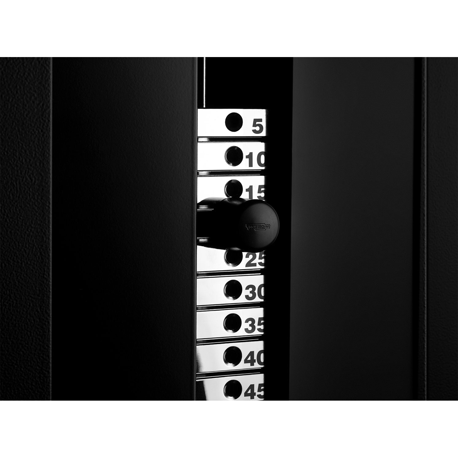 Действия при выборе нагрузки защищены защитным кожухом, удерживающим пальцы на расстоянии от пластин весового стека.