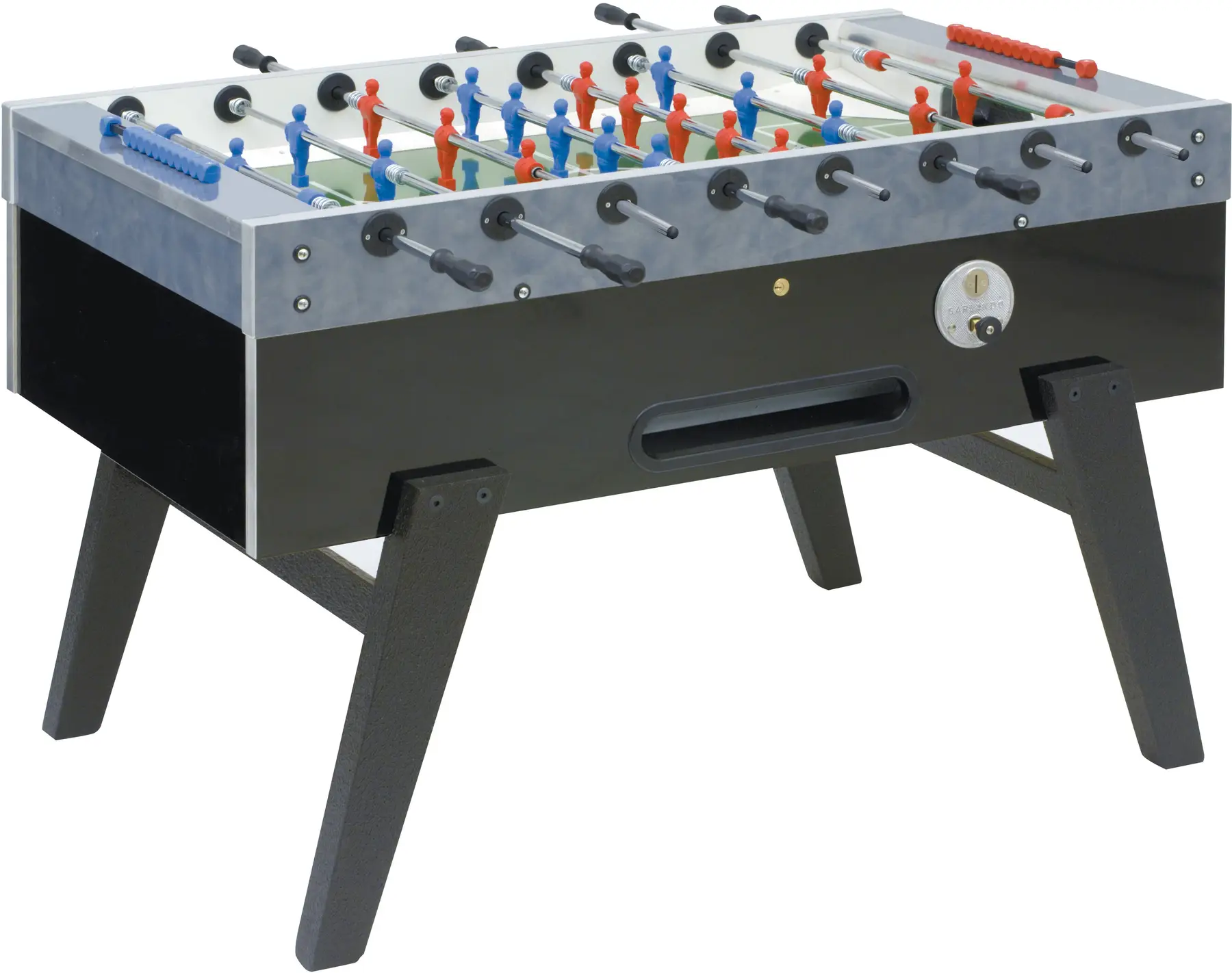 Настольный футбол с жетоноприемником Garlando Maracana (A-4UCVL) – надежный и очень простой в эксплуатации оператор: верхняя часть стола имеет подъемный механизм с надежной фиксацией, что позволяет легко и быстро его обслуживать. Модель изготовлена непосредственно в Италии из высококачественных материалов, обеспечивающих долговечность и удовольствие от игры с учетом конкретных требований, которым должен соответствовать футбольный стол. Этот стол характеризуется надежностью и стойкостью, оснащен стандартным жетоноприемником, что делает его пригодным для игры в любых местах: в барах, пабах, развлекательных заведениях, торговых центрах. Настольный футбол с жетоноприемником Garlando Maracana (A-4UCVL) соответствует европейским стандартам безопасности EN 71-1, 71-2, 71-3 и 71-9.