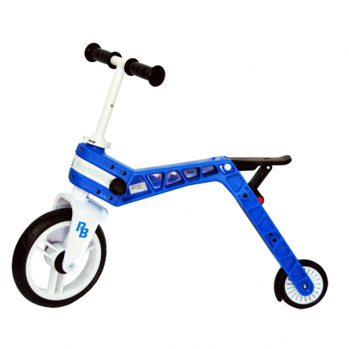- Особеннности: руль регулируется по высоте, с помощью кнопки-переключателя возможно измененить беговел в самокат и обратно.