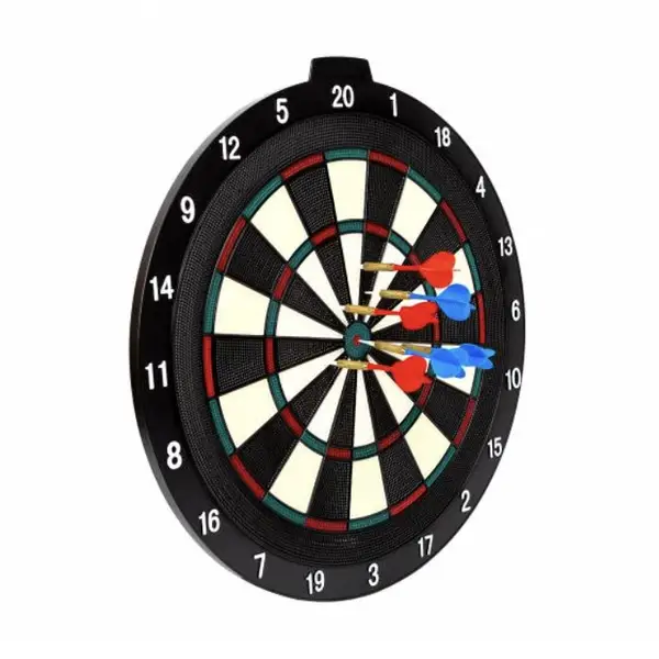 • Дартс, сделанный из полипропилена. Прочный и поставляется с 6 дополнительными дротиками и 6 сменными наконечниками.