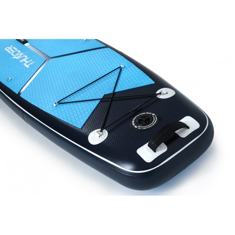 - Точка крепления веревки также пригодится, например, для привязывания доски к пирсу. В передней части борта есть багажная полка, на которой можно перевозить самые необходимые вещи или прикреплять весло во время швартовки. Благодаря использованным технологиям безопасности доску могут использовать как новички, так и опытные любители спорта.