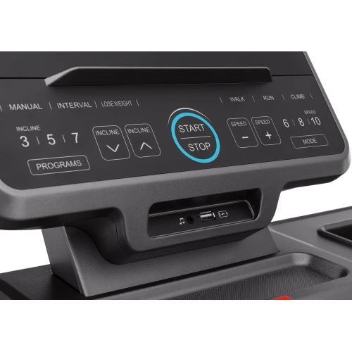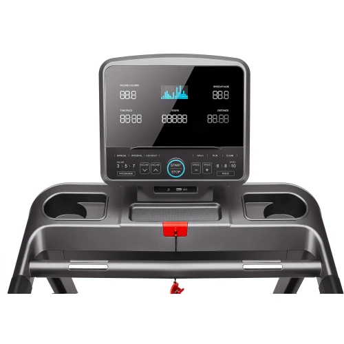 Большой и легкий для чтения светодиодный дисплей сделает использование тренажера понятным для каждого. На панели есть кнопки быстрого выбора программ: ручная программа, интервальная, похудение, ходьба, бег или скалолазание. Дополнительные кнопки позволяют быстро выбрать скорость на уровне 6, 8 или 10 км/ч и быстро выбрать угол наклона ленты на уровне 3, 5 или 7%. XT850 от Gymtek имеет 12 встроенных программ тренировок и, кроме того, функцию Body Fat, измеряющую количество жира в вашем теле.