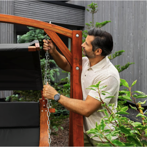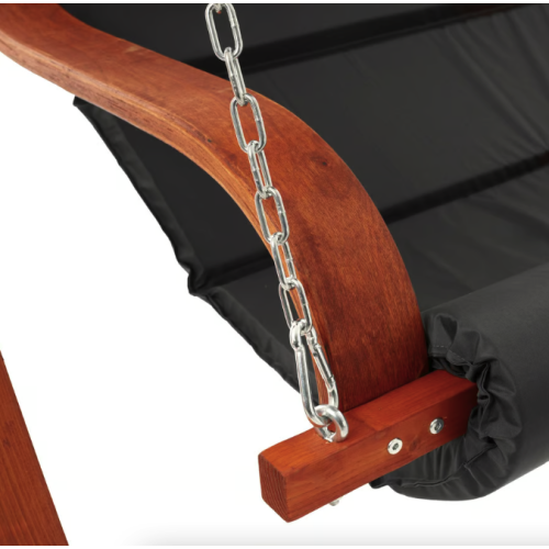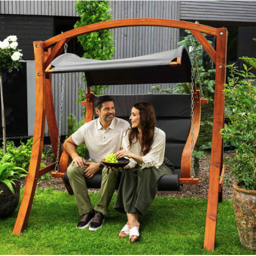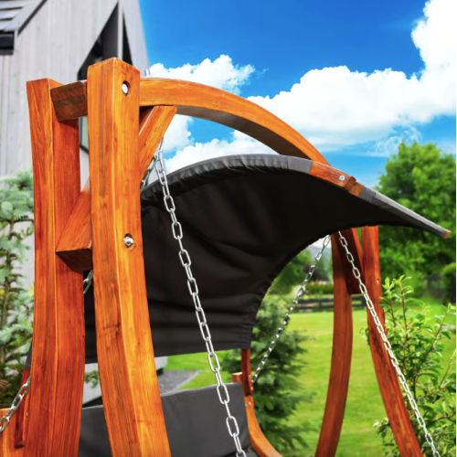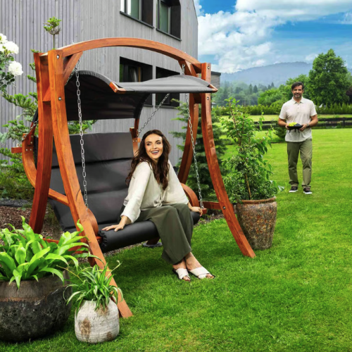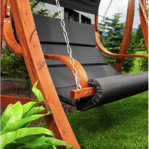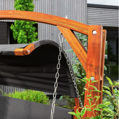 Каркас качели изготовлен из массива лиственницы – одной из самых крепких пород древесины. Благодаря своей природной стойкости к влаге и перепадам температур, Pergia сохраняет безупречный вид и выдерживает нагрузку до 200кг. Арочная форма рамы не только придает элегантности, но и укрепляет всю конструкцию, обеспечивая комфортное использование годами. Дополнительным преимуществом модели Pergia являются широкие подлокотники, повышающие комфорт отдыха.