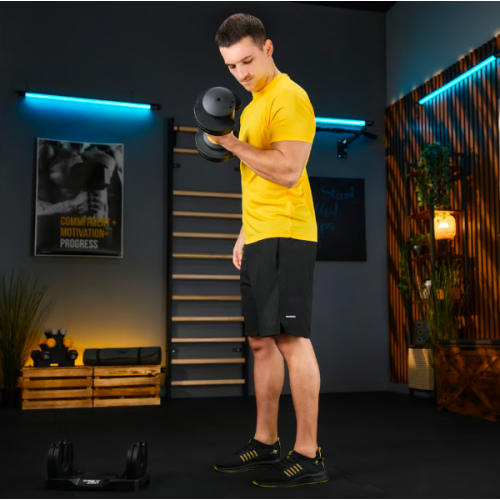 Забудьте о необходимости вручную изменять диски или искать дополнительные обременения! TX-012AB оснащена специальной технологией регулировки нагрузки, позволяющей одним движением выбрать нужный вес: 2кг, 4кг, 6,5кг, 9кг или 11,5кг. Достаточно поставить гантель на подставку, повернуть обе ручки к целевой вес, а затем поднимите оборудование, чтобы продолжить тренировку. Такая система позволяет быстро менять вес при выполнении упражнений, что особенно важно для круговых и интервальных тренировок.