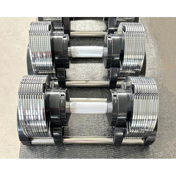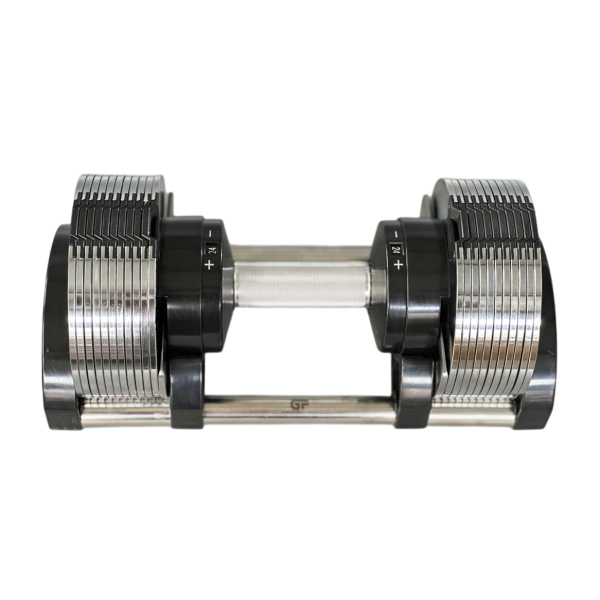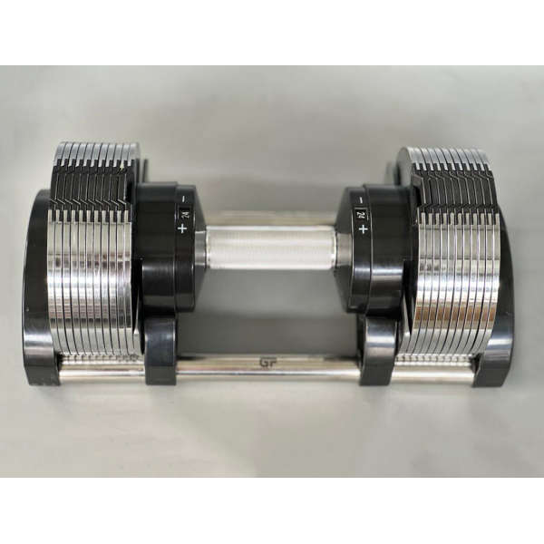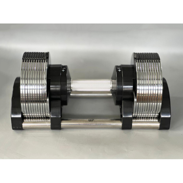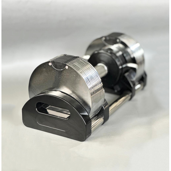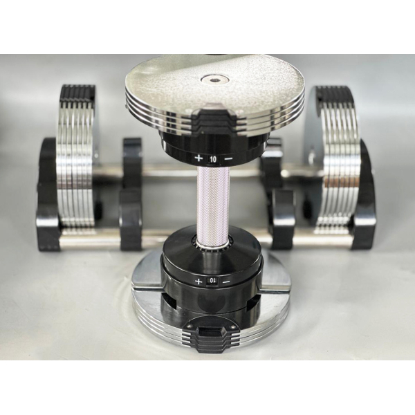 Это пара высокотехнологичных наборных гантелей с инновационной системой регулировки веса. Они позволяют мгновенно изменять нагрузку от 3 до 20 кг с точностью до 1 кг. Такой формат особенно удобен для тренировок вдвоем, симметричных упражнений на обе руки или сочетания различных видов нагрузок, например жима лежа и приседаний с двумя гантелями.