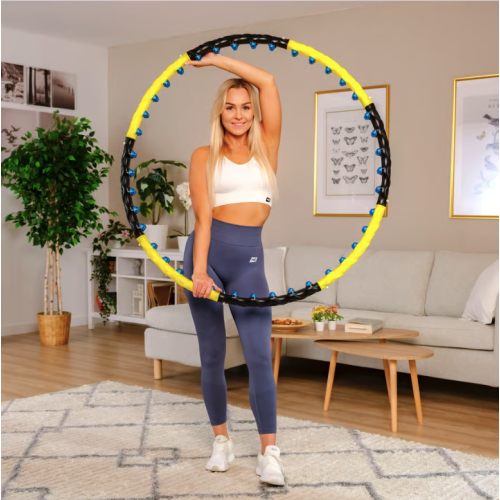 Массажный хулахуп желто-черного цвета от Hop-Sport – это эффективный инструмент для домашних тренировок, сочетающий физическую нагрузку с магнитным массажем. Благодаря 80 магнитным выступам, расположенным по всей внутренней поверхности обруча, занятия с хулахупом становятся не только динамичными, но и терапевтическими: они стимулируют кровообращение, активизируют обмен веществ, способствуют сжиганию жира и улучшают общее самочувствие. Конструкция изготовлена из гипоаллергенного полиэтилена, а разборная структура из 8 частей позволяет легко хранить и транспортировать обруч. Идеально подходит для тех, кто хочет купить хулахуп для похудения, улучшения фигуры или снятия напряжения после рабочего дня.