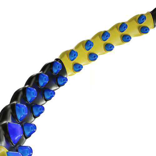 Уникальность этого хулахупа – две линии магнитных выступов (всего 80 штук), которые не просто влияют на подкожную жировую ткань, но и улучшают кровообращение, уменьшают целлюлит и способствуют мышечной релаксации. Магниты оказывают положительное воздействие на электромагнитное равновесие организма и стимулируют быстрое восстановление тканей. Такой массаж более глубокого уровня значительно повышает эффективность тренировки – вы скорее видите результат, чем при использовании классических моделей фитнес обручей.