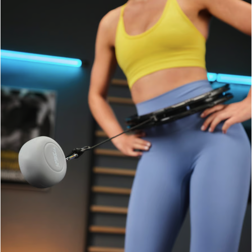 Обруч оснащен гравитационным грузом весом 400 г, который создает интенсивную нагрузку на мышцы. За счет центробежной силы активизируются глубокие мышцы пресса, талии и бедер. Длина шнура груза регулируется – чем он длиннее, тем выше сопротивление и нагрузка. Это позволяет настроить тренировку под свой уровень подготовки.