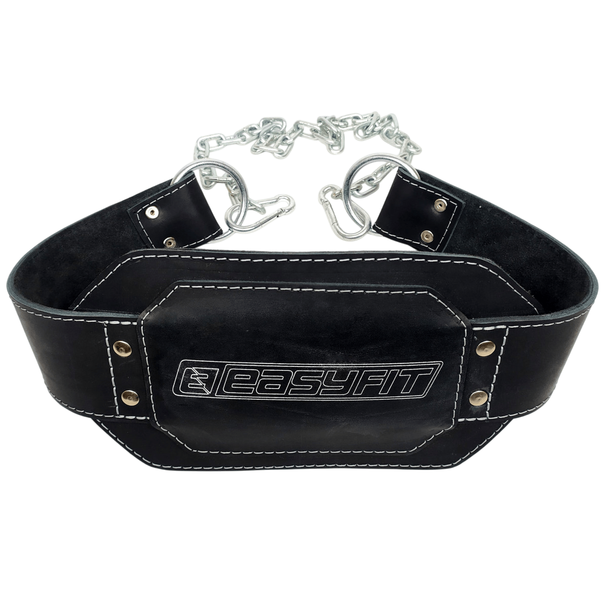 Кожаный пояс с цепью EasyFit рекомендуется для использования в коммерческих спортивных залах с весом отягощений до 250 кг. Высокий комфорт при выполнении упражнений обеспечен в результате выбора рационального кроя пояса: даже при работе с большими весами ремень не давит на тазобедренную кость и поясницу, а также не сползает вниз.