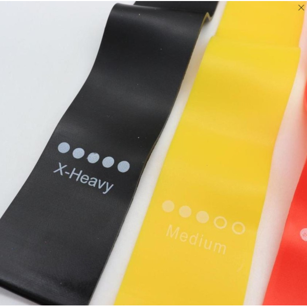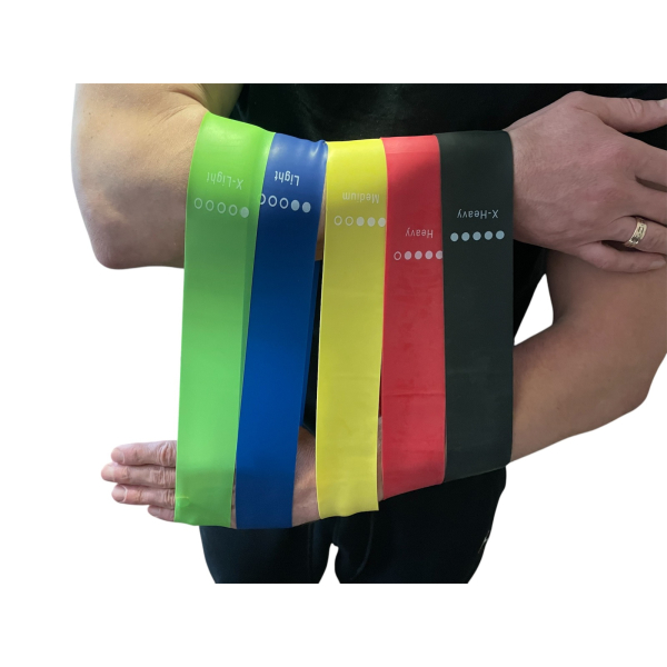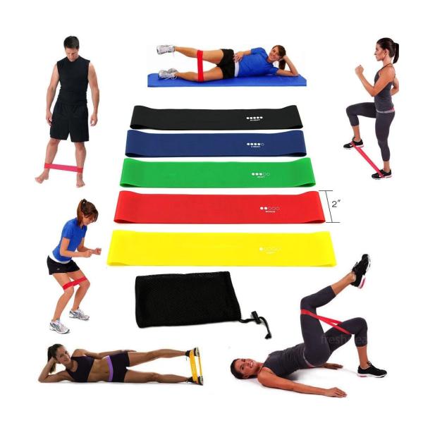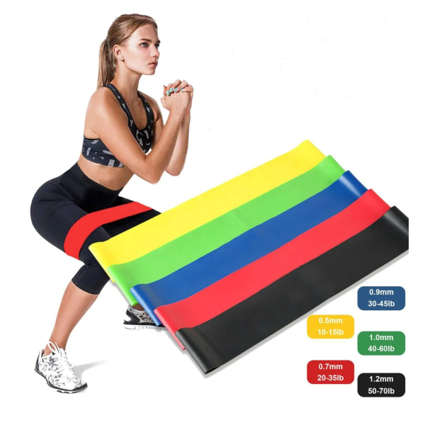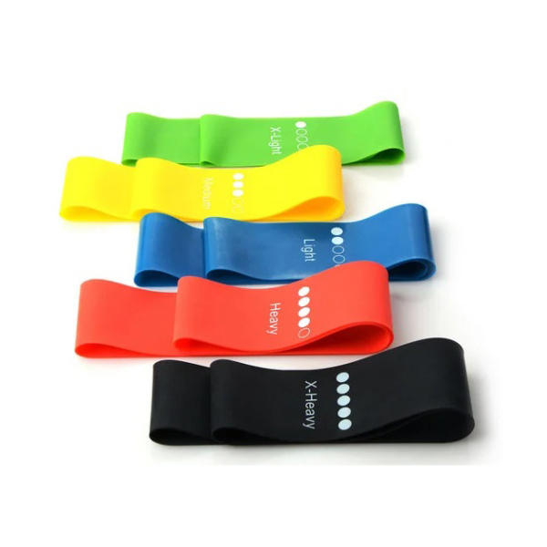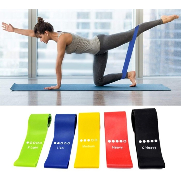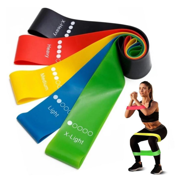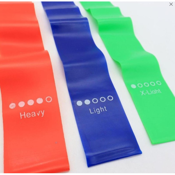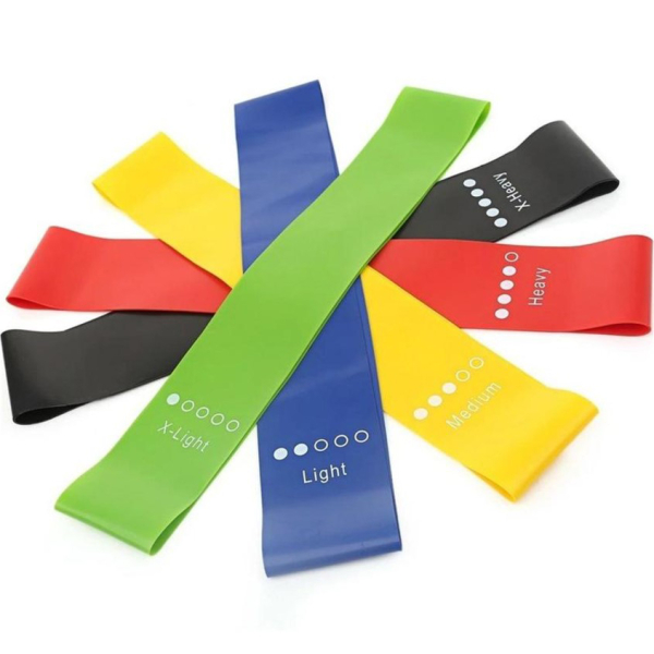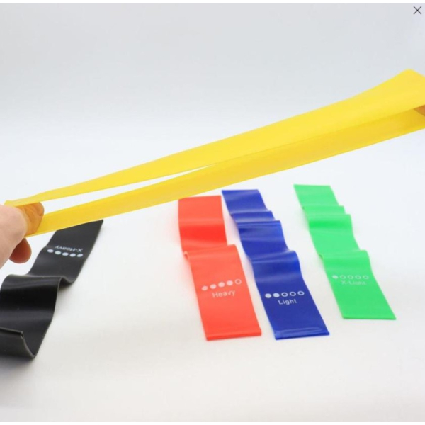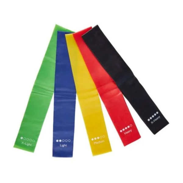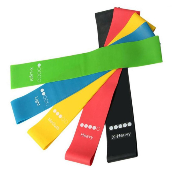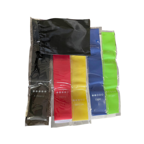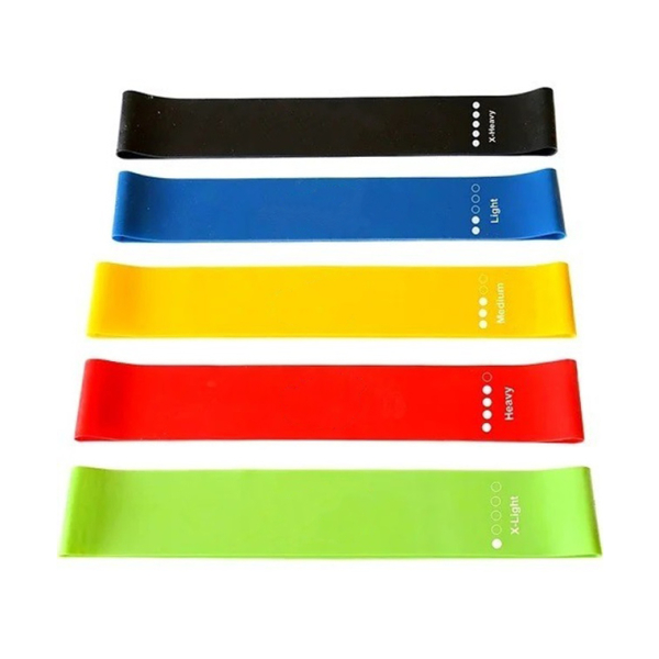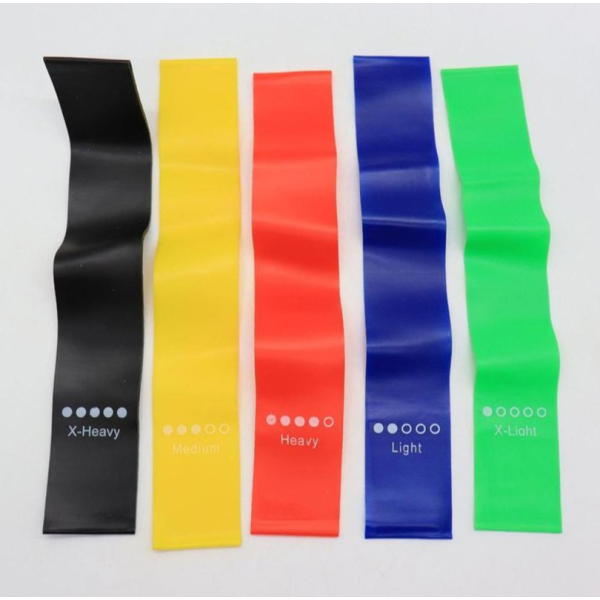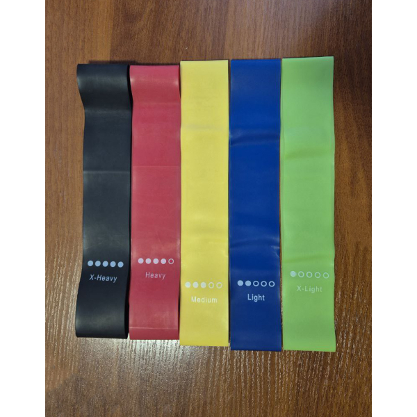 - Комплектность: Набор состоит из пяти ленточных эспандеров разного сопротивления: