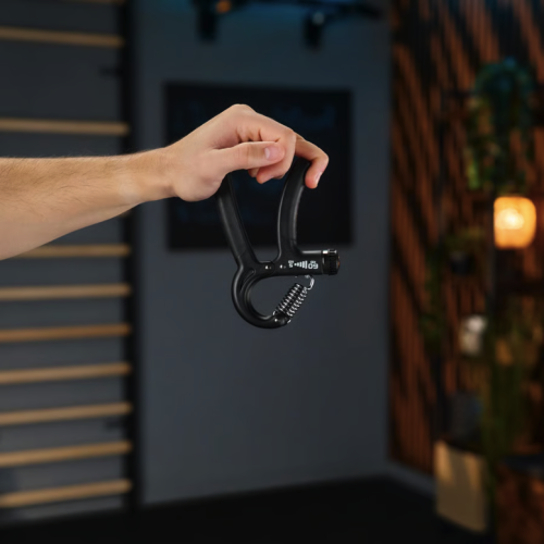 - Пружинный кистевой тренажер – Повышает силу хвата, улучшает координацию и выносливость. Часто используется музыкантами (гитаристами, пианистами) для укрепления пальцев и достижения высокой точности при игре на инструментах.