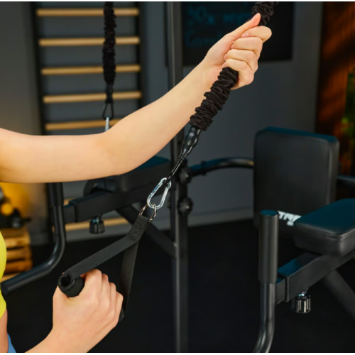 Благодаря верхним и нижним крючкам, система эспандеров позволяет разнообразить программу тренировок: