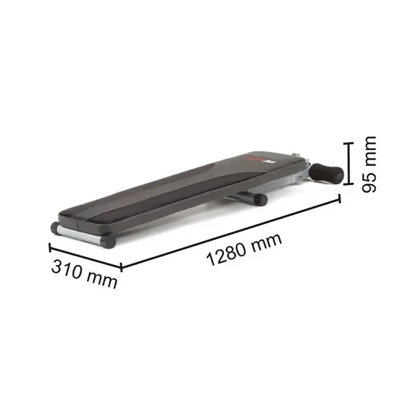 Компактные размеры и возможность сборки позволяют легко хранить скамью даже в небольших помещениях. Высококачественные поролоновые ролики обеспечивают удобную фиксацию ног, а прочная конструкция выдерживает пользовательский вес вместе с дополнительной нагрузкой до 110 кг.