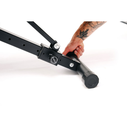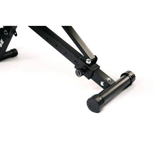 - Фиксаторы для но г: 2 уровня настройки – Важно для выполнения упражнений на пресс. Регулировка позволяет удобно закрепить ноги, независимо от роста пользователя, что обеспечивает надежную фиксацию и стабильность движения.
