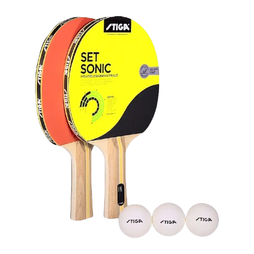 Набор для настольного тенниса Stiga Sonic Hobby состоит из двух ракеток и трех мячей для настольного тенниса. Это отличный выбор для детей и новичков, которые хотят развлечься. Набор с ракеткой и мячами тщательно разработан, чтобы обеспечить максимальный контроль, поэтому он идеально подходит для детей и новичков, когда они учатся. Одобрен Международной федерацией настольного тенниса.  Разработана с использованием тех же технологий, что и профессиональные основы и накладки STIGA.
