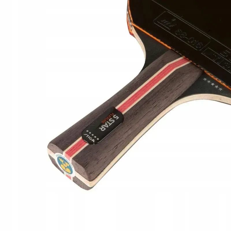 Ракетка для настольного тенниса Stiga Flexure 5 Star создана специально для атакующих игроков, которым нужна комбинация мощности и ощущения. Это профессиональная ракетка для настольного тенниса с 5-слойным основанием, вогнутой ручкой и резиной Star5 2,0 мм. Благодаря революционным технологиям ACS и Crystal ракетка обеспечивает высокую скорость и отличную гибкость, а технология изготовления WRB обеспечивает быстрые повороты, высокую мощность и отличное чувство. Ракетка сертифицирована Международной федерацией настольного тенниса, а доска изготовлена ​​по нанокомпозитной технологии NCT.  Разработана в сотрудничестве с китайской командой по настольному теннису.