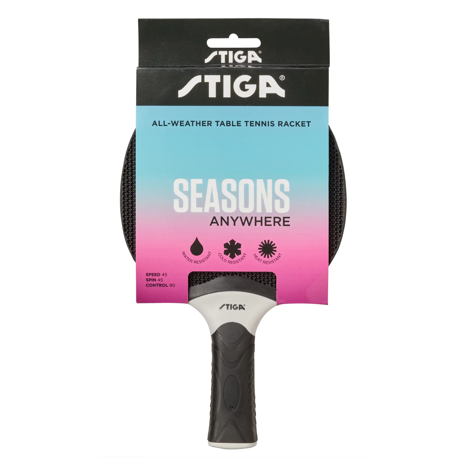 Ракетка для настольного тенниса Stiga Seasons Anywhere разработана специально устойчивой к погодным условиям и ударам, поэтому ее можно использовать как в помещении, так и на улице. Это идеальная ракетка для всей семьи.